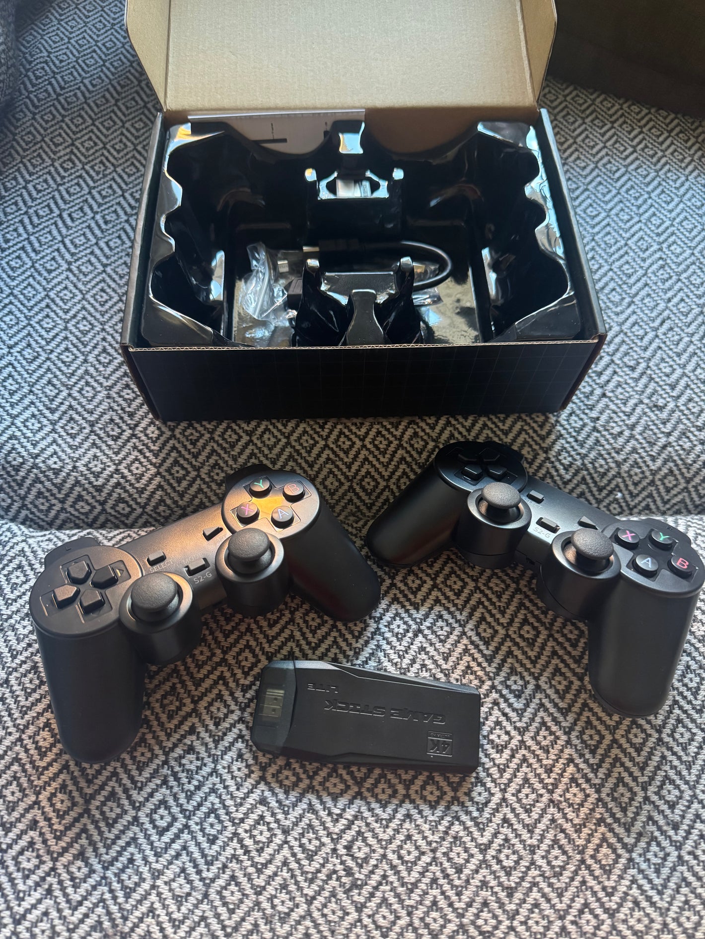 It’s super easy! Just plug the device into any TV, monitor, or computer with an HDMI port, connect the power cable, and turn it on. Pair the wireless controllers (they come pre-paired in most cases), and you’re ready to start playing instantly — no downloads or installation needed.